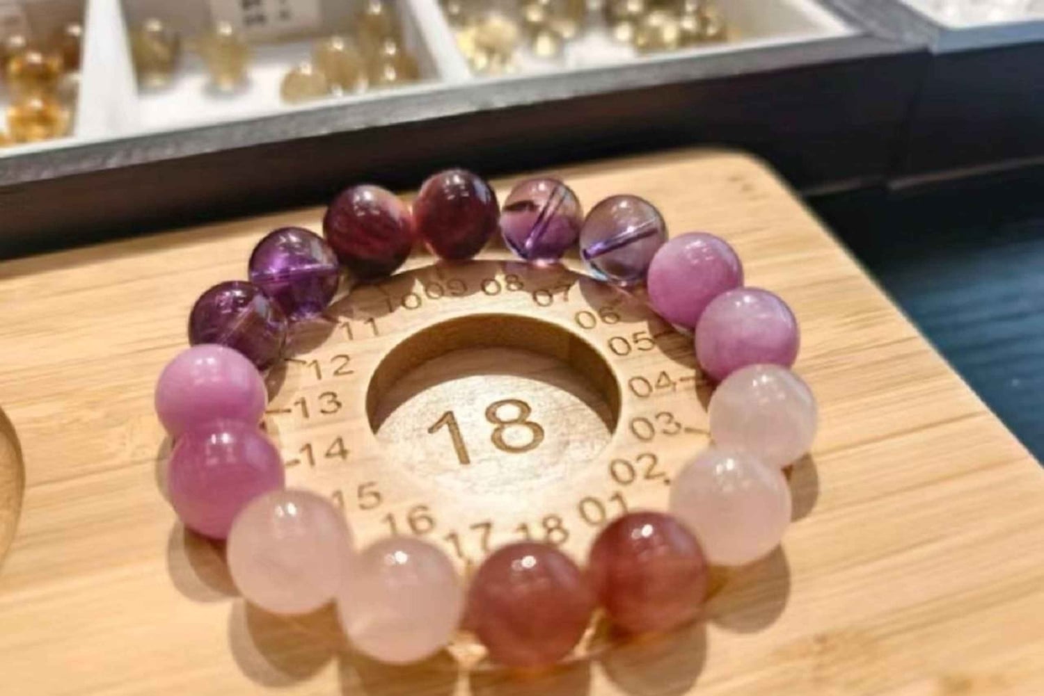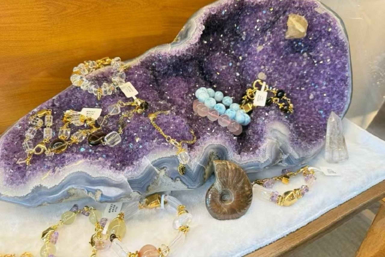 Efter denne kulturelle introduktion går du videre til workshoppens kerne: at lave dit eget krystalarmbånd. Du bliver guidet til en udvælgelsesstation med en række ægte, højkvalitets krystaller og perler. Her vælger du de sten, der appellerer til dig, uanset om du er tiltrukket af deres farve, følelse eller egenskaber. Under den tålmodige, trinvise vejledning fra vores håndværksinstruktør lærer du grundlæggende teknikker til at lave smykker. Det omfatter måling, påtrækning med en holdbar elastiksnor eller tråd og sikker knytning eller fastgørelse. Processen er designet til at være meditativ og givende, så du kan tilføre din kreation en personlig hensigt. Vores instruktør er til rådighed hele tiden for at hjælpe og dele flere historier om ædelsten i den kinesiske kultur. Workshoppen slutter med, at du pryder dit håndled med dit færdige, unikke armbånd – en håndgribelig forbindelse til både jordens kunst og en gammel kulturel praksis. Denne 1,5 til 2-timers session afholdes i et roligt, veludstyret atelier i det centrale Shanghai og er velegnet til alle færdighedsniveauer, og du behøver ingen forudgående erfaring. Du skal booke i forvejen, da der er begrænset antal pladser per session.