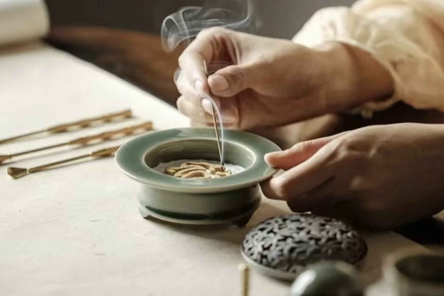 Plongez au cœur de la culture chinoise grâce à une expérience artisanale immersive au centre de l'ancienne concession française de Shanghai. Explorez le patrimoine culturel immatériel chinois séculaire et créez vos propres trésors artisanaux. Choisissez parmi des activités artisanales traditionnelles telles que la fabrication de votre propre nœud chinois, la création de bijoux en nacre incrustée, l'expérience artistique de la pyrogravure sur feuille d'or, la fabrication d'éventails en brocart et perles, l'expérience de frottage de carreaux de la dynastie Han, l'expérience de tissage de carillons en bambou, l'expérience artistique de l'encens en forme de sceau, l'expérience de fabrication de papier ancien, la découpe de papier en porcelaine bleue et blanche, les pièces diancui de style impérial, les plaques d'encens anciennes, les décorations en brocart Song, les éventails laqués et la calligraphie chinoise. Chaque pièce reflète la philosophie de « l'artisanat avec le cœur » et vous permet d'engager un dialogue culturel au-delà des mots. Options à choisir : Option 1 : Atelier uniquement. Retrouvez votre guide à la sortie 1 de la station Dapuqiao, ligne de métro 9, et profitez de l'atelier. Option 2 : Atelier et dégustation de collations locales. Cette option comprend une dégustation guidée d'authentiques en-cas de Shanghai, ajoutant une touche savoureuse à votre expérience culturelle. Ce que vous découvrirez : 1. Artisanat et perspectives culturelles : apprenez auprès d'artisans qualifiés tout en découvrant l'histoire, le symbolisme et la signification culturelle de chaque métier. Plongez au cœur de la beauté du patrimoine immatériel de la Chine. 2. Ramenez chez vous un cadeau fait main : repartez avec un souvenir personnel, empreint de la culture et de l'art chinois. 3. Dégustation guidée d'en-cas de Shanghai (si vous choisissez l'option avec dégustation d'en-cas locaux) : savourez une sélection de délices locaux de Shanghai, guidée par un expert, et découvrez la culture culinaire unique de la ville. Rejoignez-nous pour un voyage culturel véritablement unique qui transcende le simple tourisme. Apprenez, créez et découvrez l'art du patrimoine chinois comme jamais auparavant. Remarque : cet atelier est accessible uniquement sur réservation. Veuillez réserver au moins 3 jours à l'avance pour garantir votre place.Includes