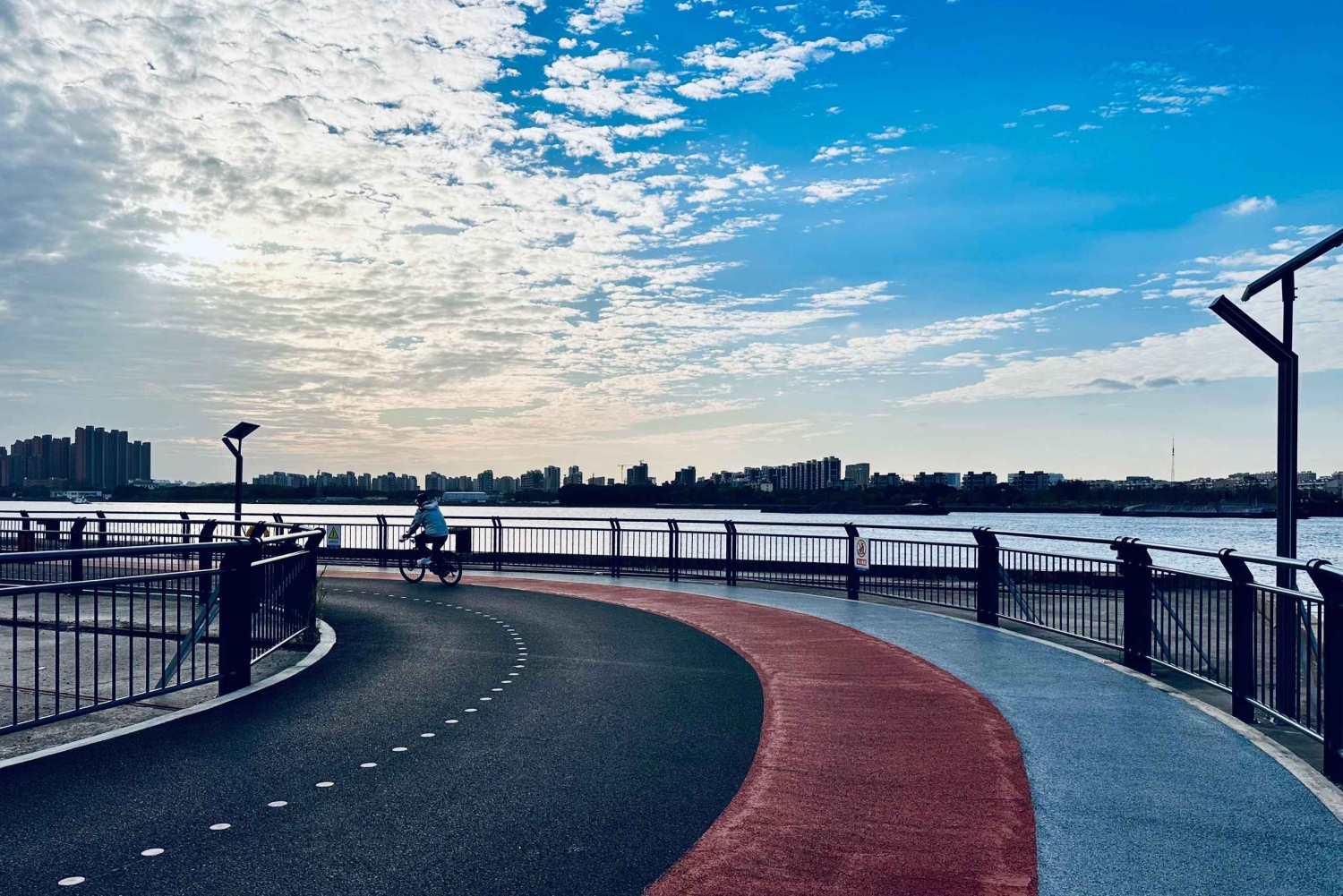 Inizia il tuo tour in bici a Qiantan Taikoo Li e pedala lungo le rive del fiume Huangpu. Fai stretching, respira l'aria fresca, goditi lo splendido panorama sul lungomare e prova la sensazione di libertà e relax che solo il ciclismo può darti.